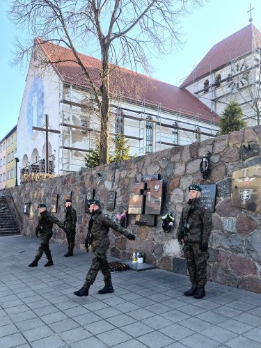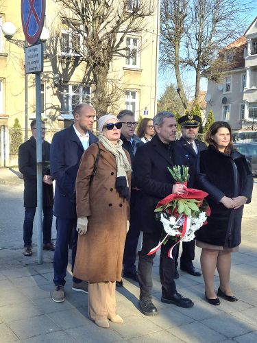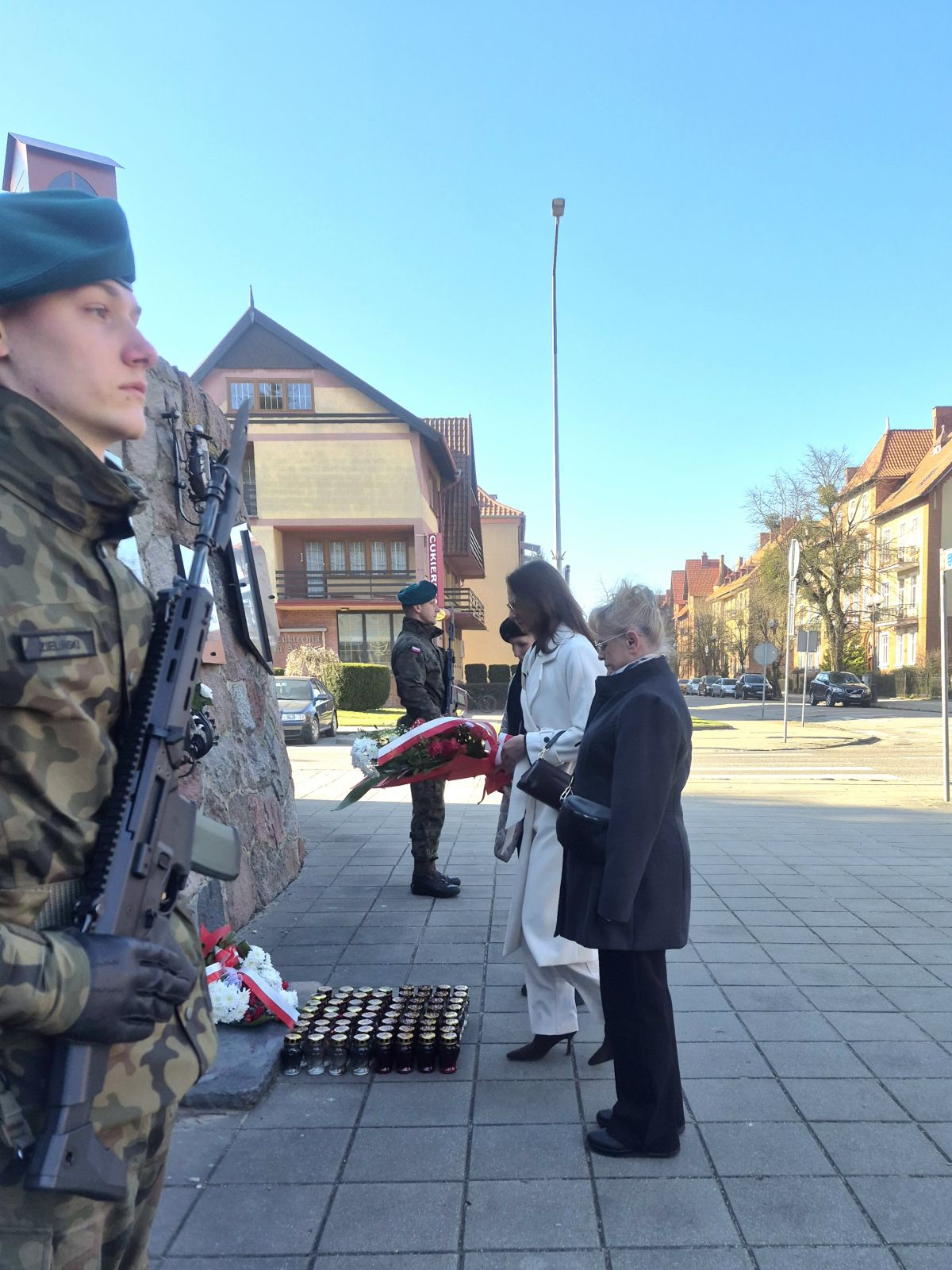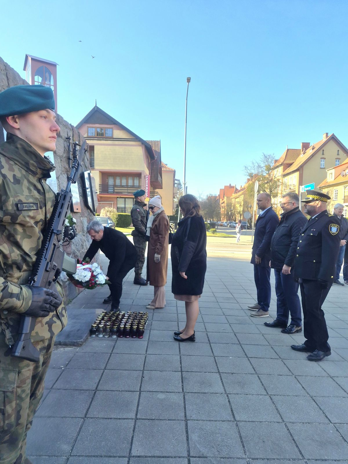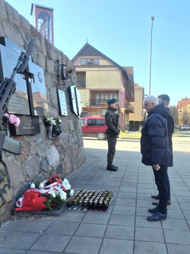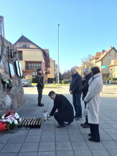 Burmistrz Giżycka Ewa Ostrowska wraz z Zastępcą Burmistrza Mirosławem Kastnerem, komendantem Straży Miejskiej w Giżycku Maciejem Ambroziakiem oraz radnymi Rady Miasta w Giżycku Pawłem Andruszkiewiczem, Grażyną Darską i Marcinem Witkowskim złożyli dziś kwiaty pod Murem Pamięci przy Sanktuarium Św. Brunona.